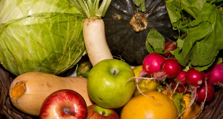 Ooferta de variedad de frutas y verduras 100% orgánica